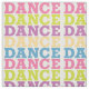 A palavra DANÇA nas letras coloridas repetidas em um teste padrão.