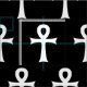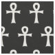 Este tecido tem um teste padrão do símbolo da cruz do ankh, com ankhs brancos em um fundo preto. O ankh é o símbolo egípcio antigo da vida. O teste padrão e o fundo preto podem ser editados se você prefere, usando a opção da personalização.