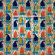 Este tecido padronizado é perfeito para amantes de pássaros. Ilustrações de araras-escarlate, araras-de-hyacinth e arararas-azuis e amarelas são intercaladas com videiras-da-selva e folhas tropicais. Os gráficos vermelhos, amarelos ouros, azuis turquesas, azuis marinhos e cinzas são colocados contra um fundo creme suave ou colorido bege.