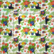 Tecido colorido com toucans e flores e plantas tropicais coloridas em um teste padrão sem emenda brilhante. Aperfeiçoe para a sala ou o berçário dos miúdos!