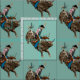 Esta design de Americana de de vintage apresenta um vaqueiro a montar um bote de balas. Lembrando o velho decor ocidental, esse revival funciona bem em ambientes tradicionais, cabines, até mesmo na design moderna. Altere a cor de fundo para corresponder à decoração.