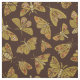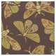 Esse tecido tem traços com flores nas asas em cores populares dos anos 1970, como laranja e verde-oliva.