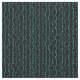 Este tecido tem um design moderno século médio de linhas com meias retângulos em turquesa num campo de preto.