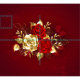 A composição de duas rosas vermelhas pintadas artisticamente e uma rosa ouro, decorada com ouro, folhas de joias sobre fundo texturizado.