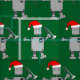 Um robô vestindo um boné de Papai noel e segurando um trombone é um divertido design de presente para músicos de baixo nível, professores de música e estudantes em concertos e bandas de marchar na hora de Natal. O tamanho da imagem e a cor de fundo são personalizáveis.