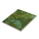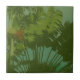 O trabalho artístico original do HomeWare neste pequeno Azulejo cerâmico usa uma fotografia original para criar a ilusão do tecido retrorreflector ou vintage. Na foto, folhas verdes e profundas tropicais, em luz solar brilhante e sombra profunda, se espalham sobre um fundo de céu azul profundo. O design tem uma tonalidade verde antiga sobre ele, e uma textura que lhe dá um aspecto de tecido de seda antiga.