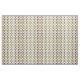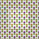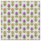Este tecido tem um design de deco de arte feito de diamantes, triângulos e túlipas de fazer de polígonos em laranja e roxo com caules e folhas verdes.