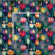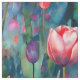Flores cortadas duram apenas alguns dias, mas uma bela pintura aquosa de tulipas coloridas durará muito mais tempo. Este campo de tulipas de várias cores no florescimento de cheios tem um fundo azul escuro.