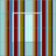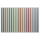 Este design apresenta um padrão de listras com cores como turquesa, azul, marrom, verde e salmão escuro.