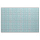 Este tecido tem um design atômico moderno do século médio de contornos ovais com pequenos círculos sobre eles e ovais de cor sólida dentro.