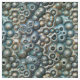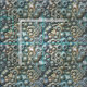 Um padrão de esferas tridimensionais abstrato e caóticas, em tons de turquesa e ouro.