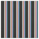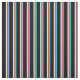 Este design apresenta um padrão listrado com cores como turquesa escura, violeta, marrom, branco e preto.