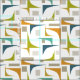 Este fabuloso tecido moderno de meio século é excelente se você quiser um projeto de costura colorida ousado. Este design apresenta os cantos e retângulos abstrato nas cores da turquesa, laranja, azul e bronzeada.