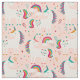 Tecido Unicórnio Branco com arco-íris a rosa