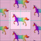 Um tecido com um tema do unicórnio. Um unicórnio em cores do arco-íris.