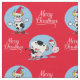 Vacas de desenho preto e branco com chapéus de Santa no tecido com texto Feliz de Natal A cor de fundo deste tecido pode ser alterada usando o editor de cores.