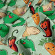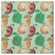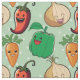 Pimenta verde alegre, pimenta picante, cebola e cenoura num fundo de bolinhas verde.