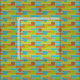 Este tecido tem um design moderno do século médio de retângulos repetidos em verde limão, cinamão castanho e turquesa com círculos em cima.
