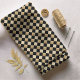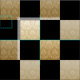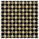 Um design de tabuleiro diagonal alternando preto sólido e damasco dourado. Gire a imagem 45 graus para obter uma verificação horizontal/vertical tradicional.