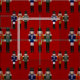 Trio de Nozes de Natal (tecido zazzle)-Um design de arte gráfica com três soldados malucos sentados lado a lado. Cada uniforme e chapéu são únicos. Um soldado veste azul e branco. Um soldado veste vermelho e ouro. O soldado final veste verde e prata. Os soldados estão unidos para criar um padrão de fundo. Coloquei os soldados num fundo vermelho. O design está disponível com cores de fundo combinadas. Escolha entre sete estilos de tecidos Zazzle para seus projetos de costura, artesanato e colcha.