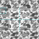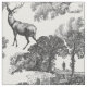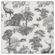 Padrão clássico do tecido francês de jouy linen, com animais da floresta, veados, raposa, lebres, árvores do país