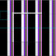 Este design apresenta um padrão de listras violeta, verde-oliva escuro, roxo, branco e preto.