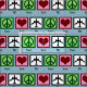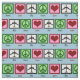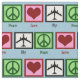 Sinais de paz, corações e aviões sobre um fundo azul claro para o céu no tecido. Excelente tecido para fazer presentes para um piloto, comissário de bordo ou alguém que gosta de aviões.