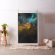 Voo de libélula brilhante, verde, desenhada artisticamente, com asas verdes e amarelas transparentes sobre fundo noturno brilhante com plantas pântanas e vagalumes. Dragonfly brilhante.