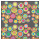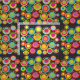 Tecido, design,, é composto por círculos coloridos e brancos com bolinhas correspondentes. Círculos tem o texto de "tecnologia cirúrgica". A cor de fundo é preta.