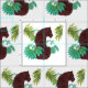 O tigre marrom sentado entre as verdes deixa um padrão personalizado em um tecido.