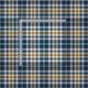 Fabric with a Plaidwerx original sporty plaid pattern in navy blue, yellow gold, and creamy white with subtle black highlights. Pattern repeats every 2". Special order larger scale via https://plaidwerx.com/contact.htm