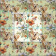 Yellow lab dog pattern fabric. Labrador Retriever dogs among wildflower stems on a pale yellow-green background color.