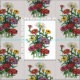 Ilustração botânica antiga das flores da zínnia em vermelho, roxo amarelo e branco