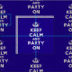 Com base no original Keep Calm e... poster, este Tecido creme e azul Mantenha Calma e Festa no apresenta uma fonte personalizada que corresponde ao original.