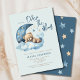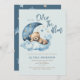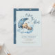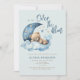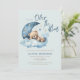 Estamos no Convite à Chá de fraldas da Lua com ursinho de pelúcia fofo dormindo na nuvem azul inchada e na lua e estrelas da meia-crescença. É um convite para chás de fraldas.