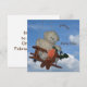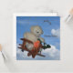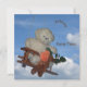 Um urso de pelúcia branco voa de avião com uma madeira - e com uma rosa bem alto no céu azul -