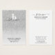 Nossa placa de exibição moderna e ousada tipografia apresenta clipes de cabelo e barrettes, uma inicial de monograma branco em serif minúscula, definida em um elegante fundo magro prateado. Completar o monograma de sua empresa é seu primeiro nome pessoal (ou um nome de empresa abreviado) em script de escrita manual feminina e chique, a tinta preta. Na frente da placa estão duas linhas impressas para guiar o corte das fendas para inserir os clipes de cabelo e, abaixo disso, seu nome comercial e número de telefone, também a tinta preta. Detalhes adicionais sobre sua empresa, incluindo endereço, endereço de e-mail e nomes de mídias sociais, podem ser personalizados na parte traseira do cartão. Basta substituir o texto de exemplo por sua própria redação no modelo de personalização.
