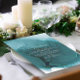 Um fundo de abstrato que lembra a tinta líquida em tons de uma palha profunda até o ciano e o branco é o pano de fundo para o elegante texto manuscrito e layouts modernos de design nos pedaços desta bela suíte de casamento. O menu de casamento mostrado aqui apresenta o acima e uma modelo para adicionar suas próprias informações pertinentes sobre o evento. Procure ID762 para ver todas as peças de coordenação neste conjunto.