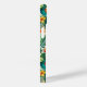 Este design inclui folhas de palma verdes e brilhantes e flores de hibisco coloridas e arrojadas em tons de vermelho, laranja, amarelo e rosa, contra um fundo de turquesa refrescante.