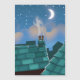 Telhados na paisagem noturna de desenho animado.