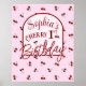 Um encantador design de cereja para comemorar o seu primeiro aniversário. Este poster de cereja fornece uma dica de charme picante e vintage. Este trabalho de arte único tem vários tons de escarlate, blush, violet e chartreuse. Altere a cor de fundo, o gráfico e o texto para personalizar e personalizar completamente.