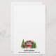 Papel de papelaria com um tema de Natal bonito e caprichoso. Um trailer aconchegante decorado para o sorteio de Natal entre alguns pinheiros.