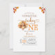 EDITÁVEL Nosso Pequeno primeiro aniversario Turco Gingham Wildflower Invitation Elegante Orangw Gingham Rustic Watercolor Wildflower Tornando Um Convite De Aniversário