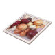 Um azulejo de arte perfeito para um pano de fundo da cozinha é esta bela peça clássica com uma pilha de adoráveis cebolas vermelhas e amarelas e cascas brancas de alho. Também faz trivialidades excelentes! #foodie #kitchenart #cebolas #alho