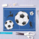 Tecido presente mostrado em azul - basta escolher a opção personalizar para adicionar texto ou alterar a cor de fundo. Combina com nossas bolsas de presentes temáticos de futebol, coletas de papel e louça, vendidas separadamente. 203-306-0337.