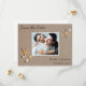 Adicione sua própria foto ao nosso casamento de praia. Salve os cartões com fotos de Data com uma bela estrela no tema da praia de areia! Modelo fácil de usar - basta adicionar sua foto e digitar os nomes do noivo e do noivo, juntamente com a data do casamento no espaço fornecido.