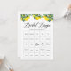 Adicione uma explosão de diversão de cidade ao seu chá de panela com este Cartão de Jogo Lemon Bingo, com limões de aquarela vibrantes e verde elegante. Perfeito para um chá de panela temático "Main Squeeze", este jogo inspirado no verão adiciona uma reviravolta refrescante à sua celebração.
