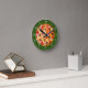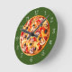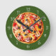 A parede divertida da cozinha faz relógios com um gráfico de pizza coberta com uma mistura de deliciosos toppings e marcas de rosto clássicas do relógio que acrescentam uma aparência de na moda. Adequado para uso em sua casa, no seu compro de pizza, ou em uma sala de caverna de homem.