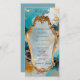 Um design artístico sem costura de ondas ouros cintilantes em blues, turquesa, e espuma branca que cai contra a costa, pintada em óleos.