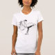 Esta design é uma cegonha segurando um bebê. A cegonha tem o bebê em um cobertor e está segurando-o em seu bico. Esta cegonha segurando uma design para bebê parece excelente nesta Camisa de T-Shirt feminina